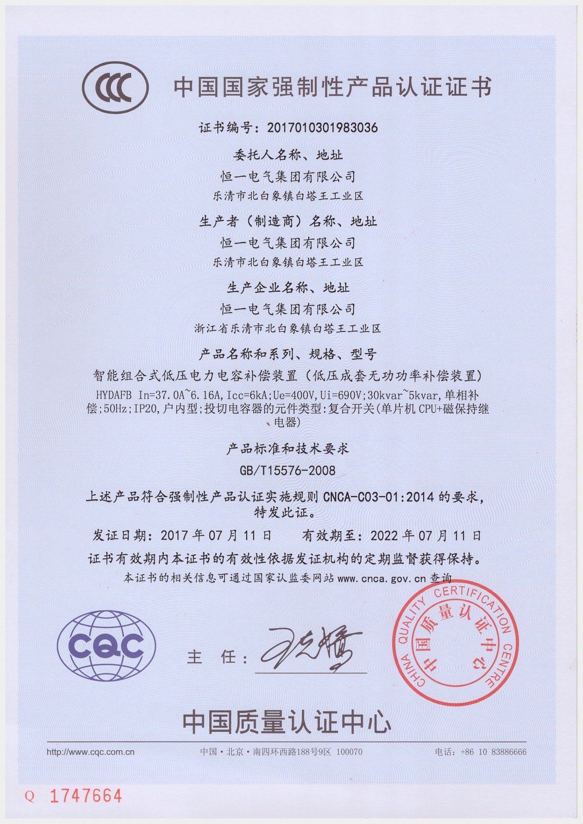恒一智能組合式低壓電力電容補償裝置( 智能電容器)是0.4kV 低壓配電網(wǎng)降低線損、提高功率因數(shù)、改善電能質(zhì)量和節(jié)能降耗的智能型無功補償裝置。